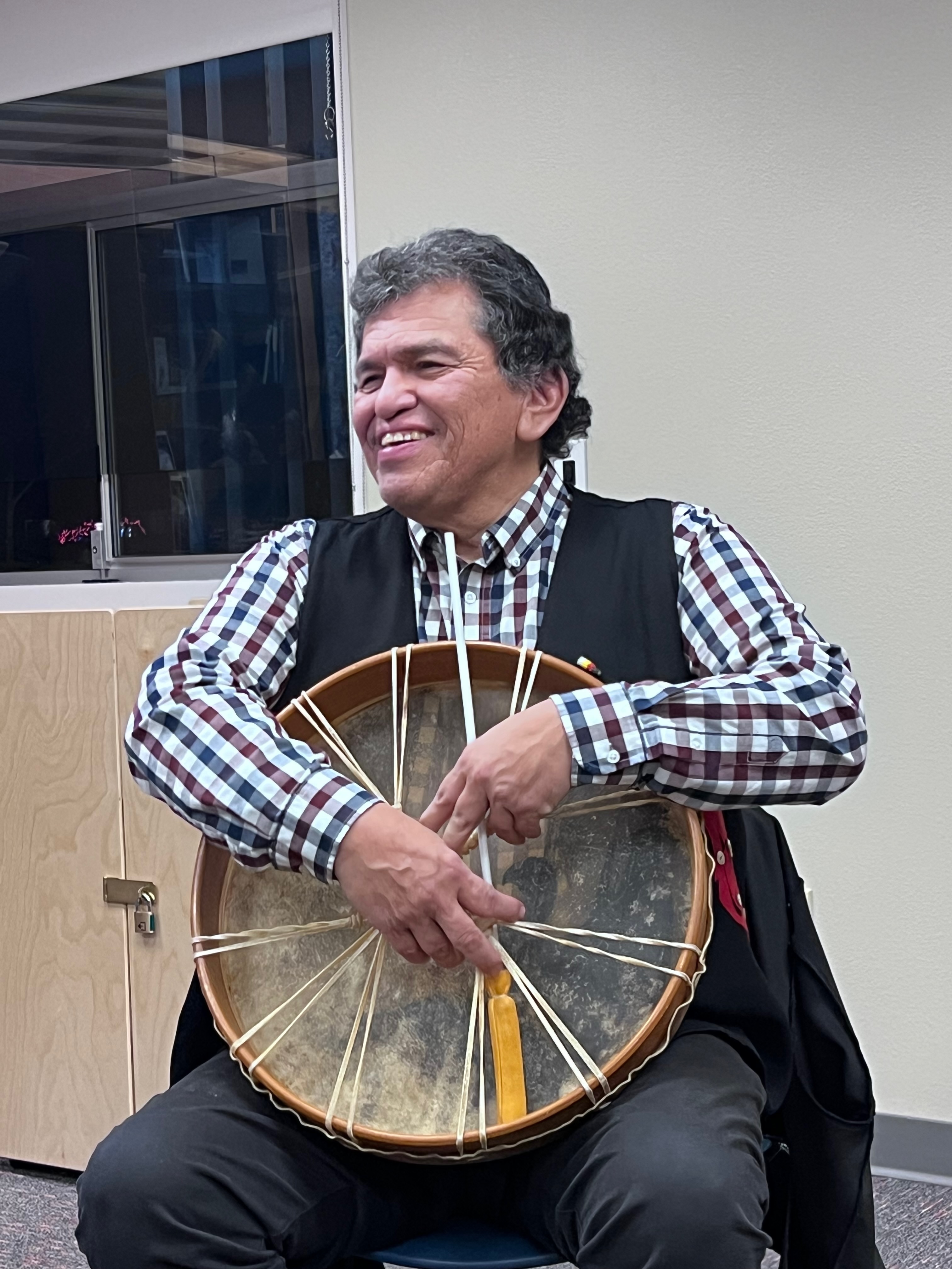 “My name is Roger Fernandes. My native name is Kawasa. I’m a member of the Lower Elwha Band of the S’Klallam Indians from the Port Angeles area of the state of Washington. I was born and raised in the Seattle area. My mother moved to the city when she was a young woman and I was born in 1951 in Seattle. So I guess I’m what you would call an urban Indian, in some regards that makes life difficult in figuring out your native identity. In other regards, it can be seen as an asset. As when you do begin to look for your tribal identity it becomes a very focused search. That focused search led me to art and language and ceremony and story. So the past few years I’ve been telling Native American stories from this region for my own tribe as well as the tribes of the Puget Sound area.”